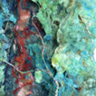 1 - With cocoon strippings I prepared around thirty irregular lacy ‘fabric’ pieces (ca. 30 per 15 cms) and coloured them in 3 different colours – aquamarine green, turquoise and petrol blue – using various blends of very diluted acrylic inks sprayed on very thin stripping layers.